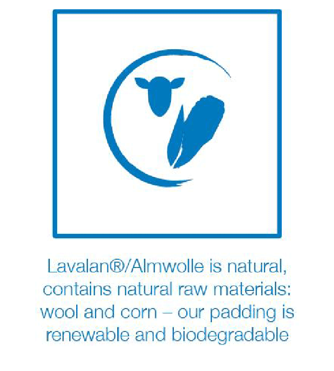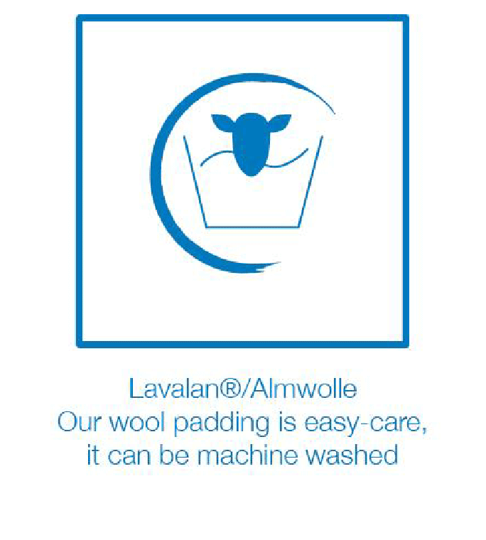 アルムウールはドイツ・フランケンの専門家である Bauer Vliesstoffe によって生産されています。アルムウールは洗濯可能で、従来のウールよりも早く乾きます。アルムウールに使用されているウールは、アルプス地方の羊から採取されたものです。
