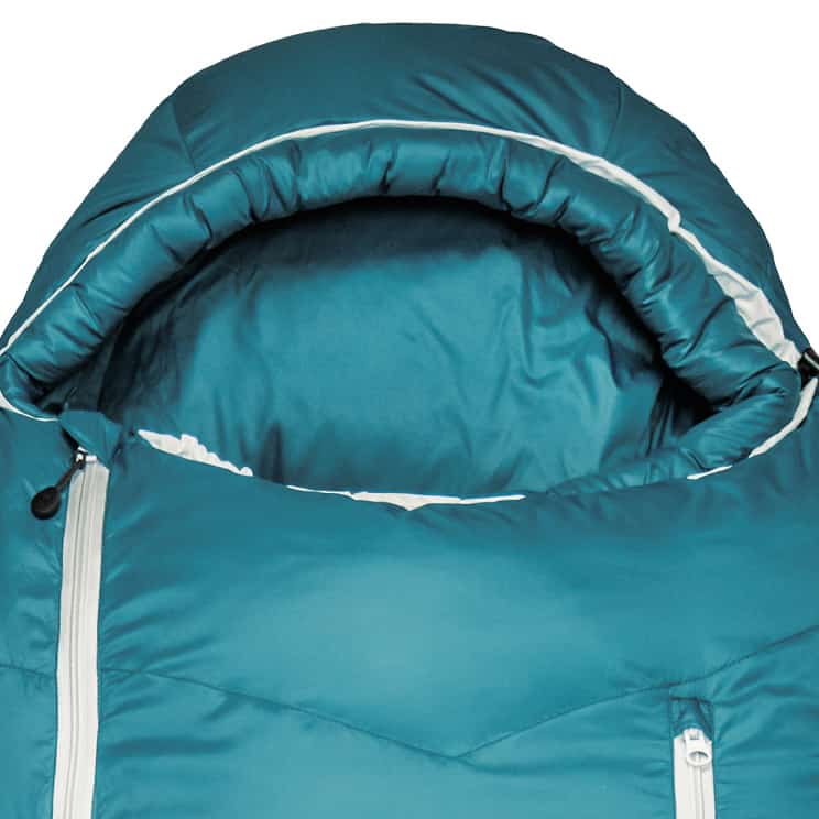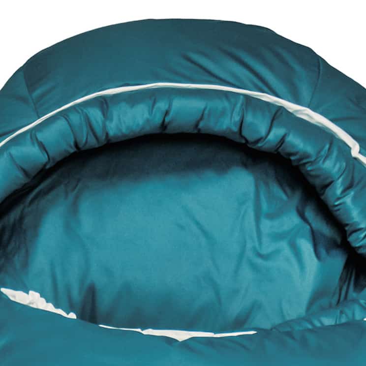 内側丁度首の位置にあるフィリング入りのチューブ0度以下ではネックバッフルには大きな意味があります。ここで暖まった寝袋の空気が拡散するのを防ぎます。