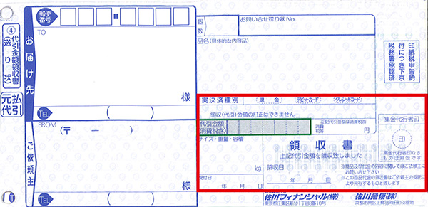 ご注文商品到着の際に渡される「佐川急便控え」を領収書としてご利用ください。